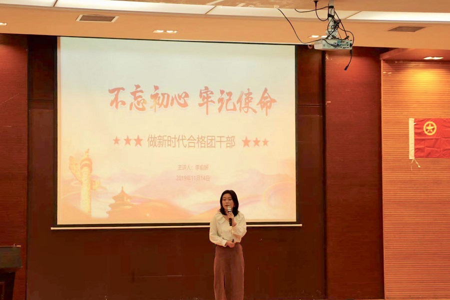为落实“不忘初心、牢记使命”主题教育,解决基层团组织在工作中存在的突出问题,推动基层团组织各项工作规范化、制度化、科学化,提升广大团干部的业务水平和服务能力,共青团太阳成tyc7111cc委员会于2019年11月14日在公司第一报告厅举行“不忘初心、牢记使命”2019年太阳成tyc7111cc基层团务干部培训班之公司团委书记团课培训。参与本次活动的有太阳成tyc7111cc团委书记李俞妍,员工会指导老师蔡俊发,17级、18级、19级全体班团干部。