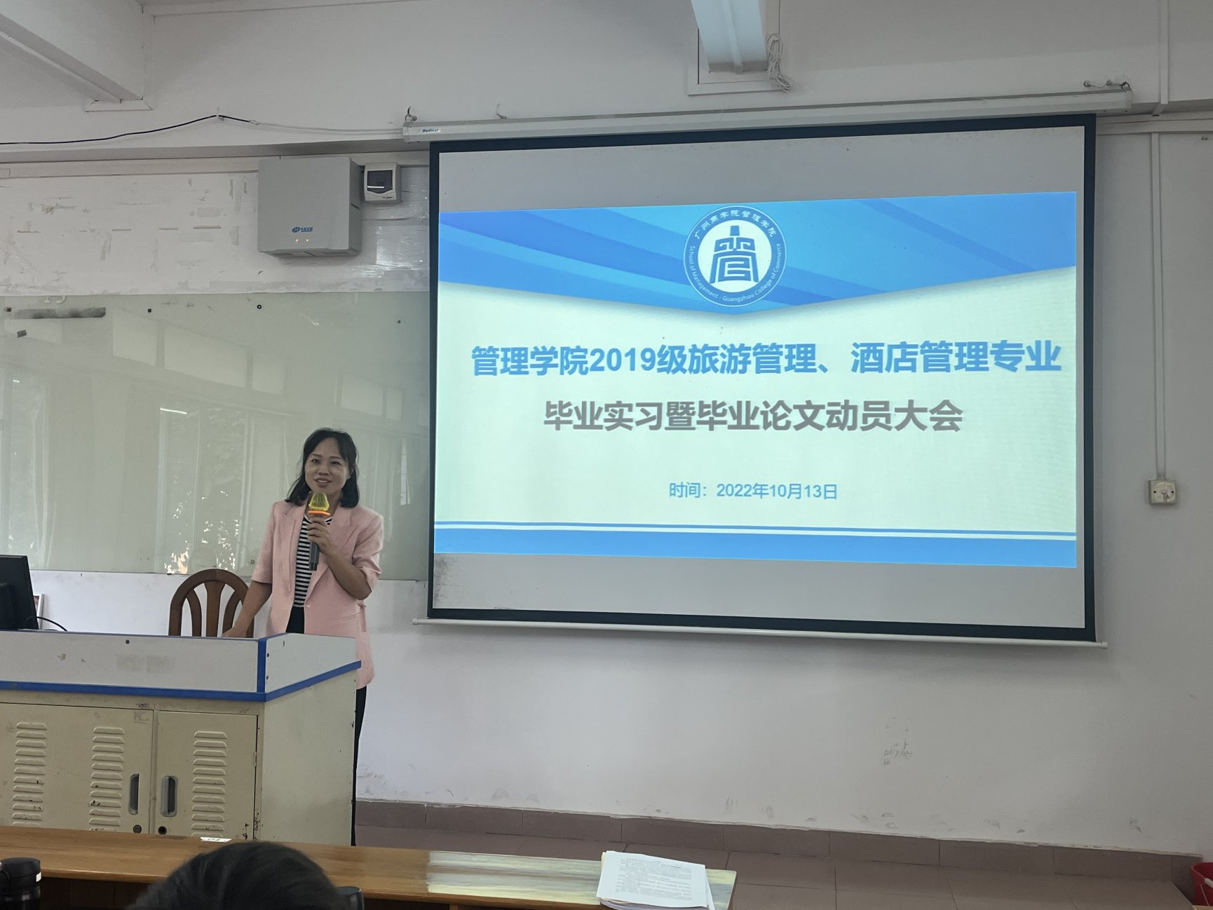 为响应教育部对加强老员工毕业实习的指导号召、积极落实公司人才培养方案,推进2023届毕业生实习就业及毕业论文工作的有序进行,使同学们明确未来发展方向及规划,10月11日、13日,太阳成tyc7111cc在一教206、三教104召开2023届毕业生实习就业暨毕业论文动员大会。太阳成tyc7111cc物流管理专业教研室主任秦新生、酒店管理专业教研室主任黄丽英、市场营销专业教研室主任李萌萌、2019级辅导员黄华科、冯梦琦及全体员工参加本次大会。