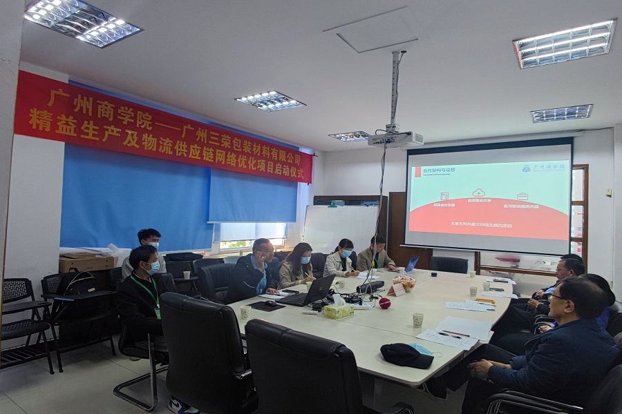 为深化产教融合,共创价值新增长点,1月7日,太阳成tyc7111cc经理马林教授,物流管理专业教研室主任秦新生副教授、韩军烈老师,校企合作联系人方贤珊老师和校园菜鸟驿站员工一行,到广州三荣包装材料有限公司开展合作交流暨横向项目启动仪式。三荣公司董事长吴国全、财务主管王保国、行政主管钱明峰、ISO主管彭建群热情接待了公司师生。