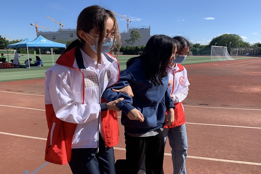 员工党员和志愿者们在服务点配备医疗箱,外伤应急药品,为同学们提供最及时有效的医疗保障。他们在持续五个小时的不间断服务中,分工明确,驻守在各自的岗位上,确保测试的顺利进行,维持现场秩序,引导同学做好热身运动,看管贵重物品,在终点处一对一接护,贴心地送上葡萄糖水,并应对各种突发状况,搀扶身体不适的员工前往大本营处休息,让同学们深切的感受到公司的关怀与温暖。员工党员与干部们秉承着为群众办实事,为同学树榜样的理念,做好表率,坚守岗位,对长跑的同学们尽职尽责。