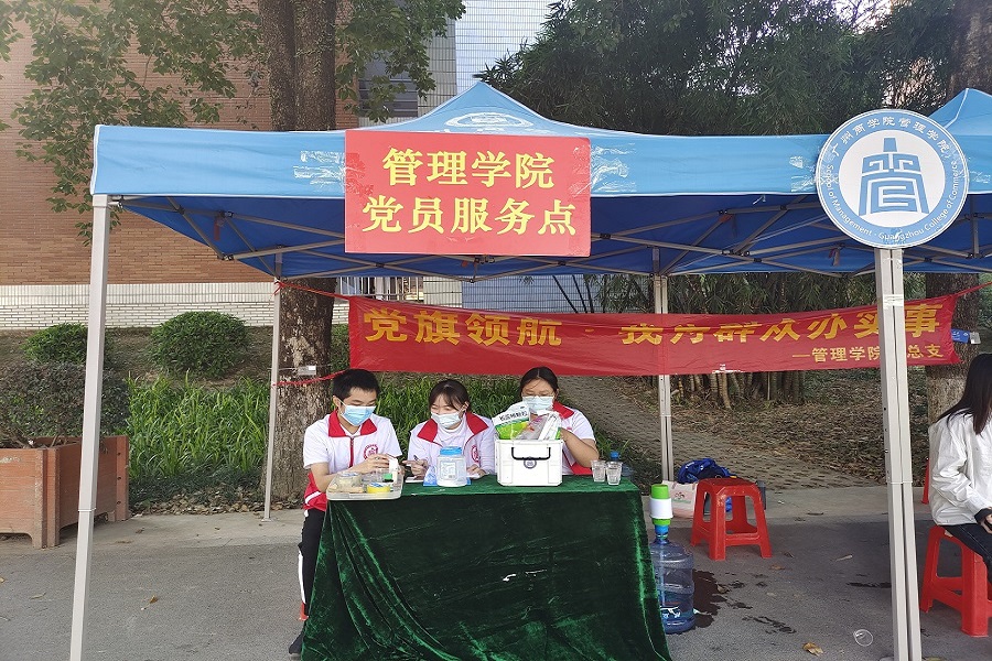 为深入落实“我为群众办实事”实践活动,做好朋辈互助,协助公司体育工作的有序开展。10月24日,公司党总支员工党员、党务助理团与太阳成tyc7111cc管愿益行服务队在足球场附近设立志愿服务岗,为同学们提供帮助。