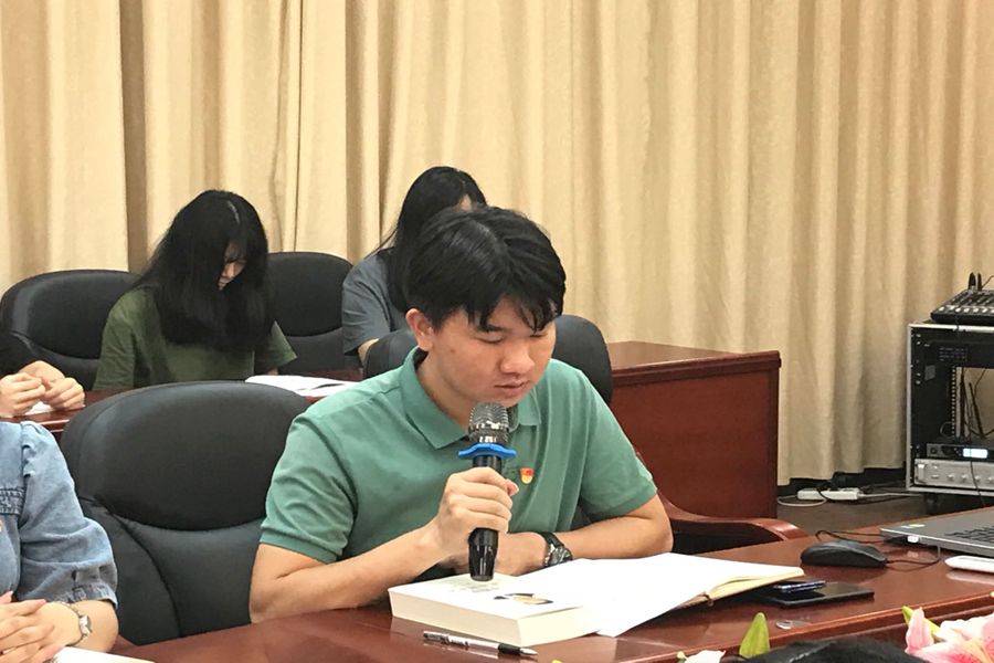 首先由光荣退伍的连勇同学以“永葆爱国之心,争做合格青年”为主题,结合他自身的军旅经历,分享了他对服役前、服役期间、退役后对爱国的认识,鼓励同学们积极学习政治理论,弘扬爱国精神。接着由杨应涛等4名员工代表针对《习近平谈治国理政》第三卷中的部分片段进行了朗读。随后由罗显雄等7名入党积极分子朗读《习近平谈治国理政》第三卷中 “不断增强‘四个意识’,坚定‘四个自信’、做到‘两个维护’”的内容。紧接着各入党积极分子积极进行学习心得交流,曾子缘同学认为我们不仅要在不断强化自身的理论知识的同时,还需要不断加强对中华优秀传统文化进行学习并运用到实践中。接着,李俞妍带领入党积极分子积极分子深入学习《习近平谈治国理政》第三卷的内容,强调了学习《习近平谈治国理政》第三卷的重要意义。