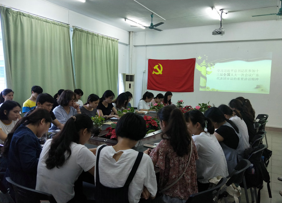 会议第二项议程是学习领会习近平总书记在参加十三届全国人大一次会议广东代表团审议时的重要讲话精神,每位党员都进行了学习并通过分享心得的形式巩固学习效果,每位党员结合自己的实际情况分享了自己的收获。