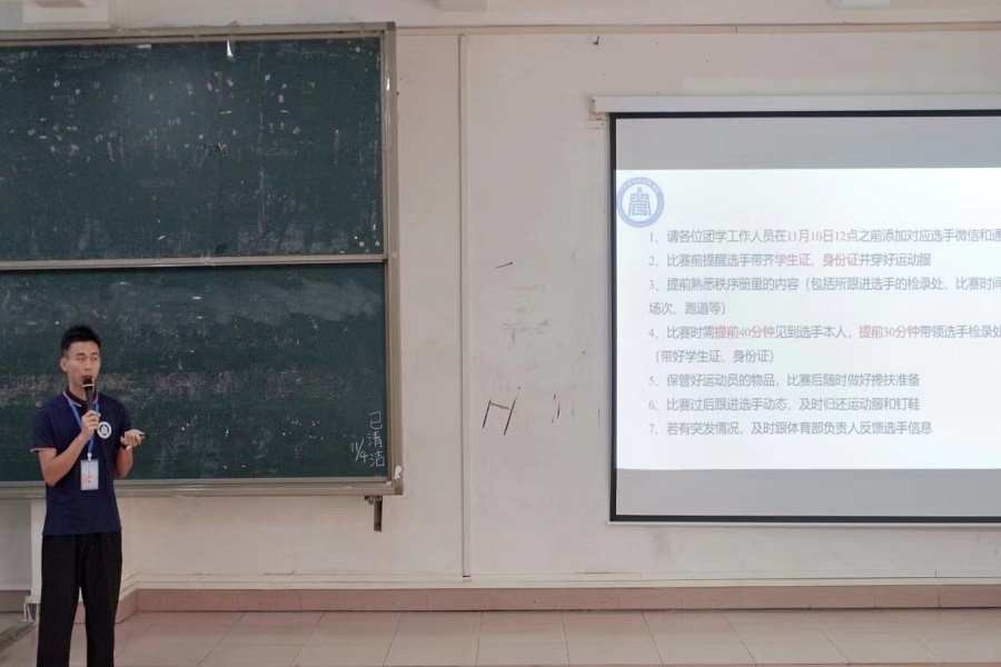 会议伊始,员工会体育部副部长彭景南对本次校运会比赛项目、竞赛日程、前期和当天的安排以及注意事项作了详细的解说。他强调,要密切关注参赛同学的赛事安排和健康状况,维持好赛场秩序。同时做好工作衔接,确保此次运动会的后勤保障和服务工作有序进行,希望展现管院良好的精神风貌,再创管院佳绩。在答疑环节中,员工会体育部工作人员针对与会人员提出的疑问进行解答,为校运会工作开展奠定良好的基础。