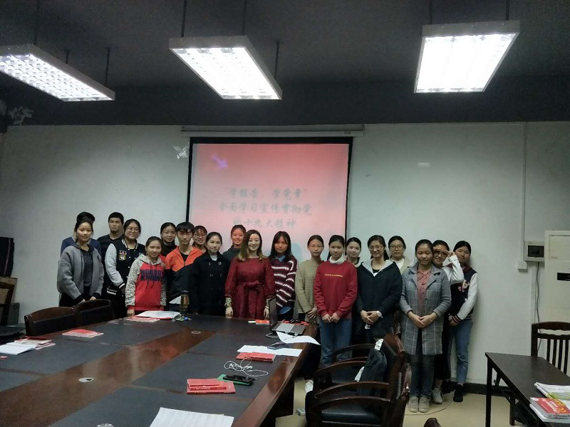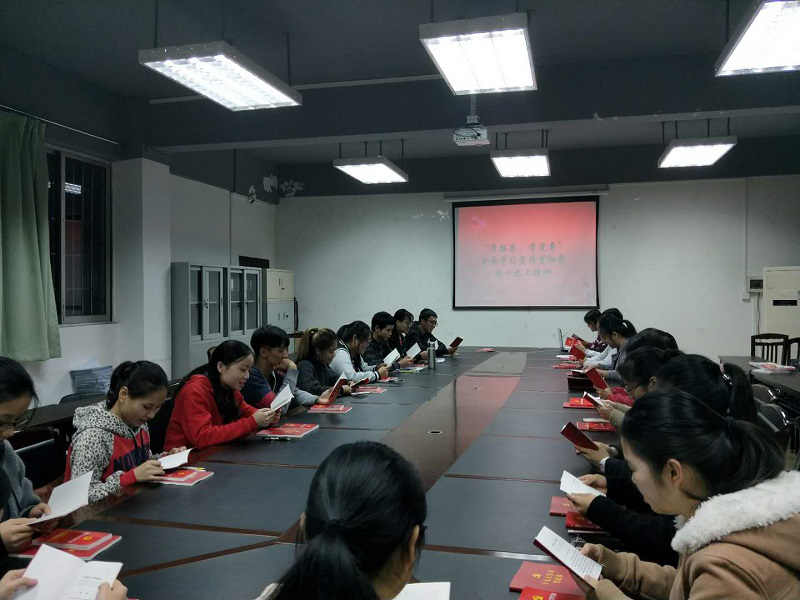不忘初心,方得始终。拥抱新时代,担当新使命。为响应学习党的十九大精神,加强培养党员的服务意识,理解身边人,了解身边事,加强党员对新时代中国特色社会主义的了解。2017年12月7日19:20,旅游公司15(含16,17)级党支部在六教205会议室召开了“学报告 学党章”——全面学习宣传贯彻党的十九大精神的党组织生活会议。