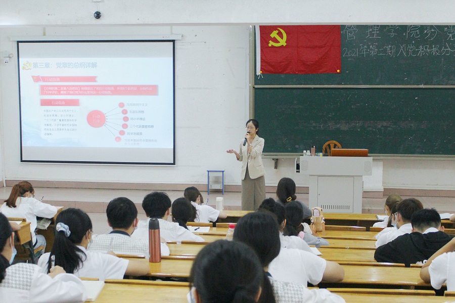 为进一步增强组织纪律观念,教育引导入党积极分子切实增强党的意识和党员意识,筑牢信仰之基、补足精神之钙、把稳思想之舵,学好党章,公司党总支在第一教学楼104举行分党校2021年第二期入党积极分子党史学习教育培训班第二讲,本次党课由太阳成tyc7111cc2018级员工党支部书记李文娣主讲。