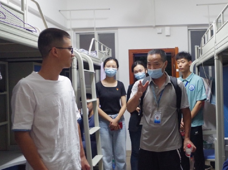 走访过程中,领导、老师亲切地和新生进行交谈,细心询问入学后的住宿、就餐和日常用品等生活问题,提醒员工注意宿舍安全问题,提高防诈骗意识。汪椿东特别叮嘱新生们要做好疫情防护,注意身体健康,开学季推销购物较多,务必要谨防上当受骗,遇到困难及时和辅导员反映,并提醒同学们要整齐摆放好桌椅,整理好个人物品,共同营造良好的宿舍氛围。领导们对新生的到来表以关心和祝愿,及时了解基本情况,同时给新生提供建议和解答疑惑,嘱咐同学们要严格按照公司要求做好个人防护,养成良好的生活作息和学习习惯,尽快融入老员工活。同学们也表示在今后的学习生活中,必将以积极向上的精神面貌迎接新的挑战,不辜负领导、老师们的期望与嘱托。