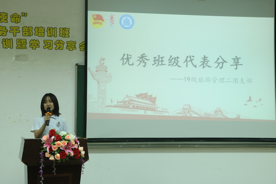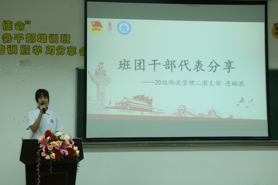在分享环节中,优秀班级代表物流管理1801班长罗鑫平首先从班团干部的角色定位、掌握班团情况、班团目标的制定、特色班团建设等方面分享了他们加强班团凝聚力的方法与经验。接着优秀班级代表旅游管理1902班长吴沁遥从班级简介、班级情况、班风展示、班团干部的自我修养四个方面进行分享。她重点介绍了作为班团干部的原则和工作方法以及班团常见的问题及应对措施。班委代表电子商务1803刘美欣分享了她连续三年担任班委的工作心得,强调了沟通的重要性,并提出要充分发挥班委的作用,为建设优秀班集体添砖加瓦。班委代表电子商务1903潘慧颖和物流管理2002连婉淇分享了她们的基层团务工作培训心得和过去的班委工作经验,同时也对成为一名优秀班团干部提出了相关建议。五位分享者以班级为重,架起了公司、老师与同学之间沟通的桥梁,为班级建设做出了巨大贡献,提高了班级凝聚力和战斗力,彰显了新时代青年人敢于负责、勇担使命的精神面貌。