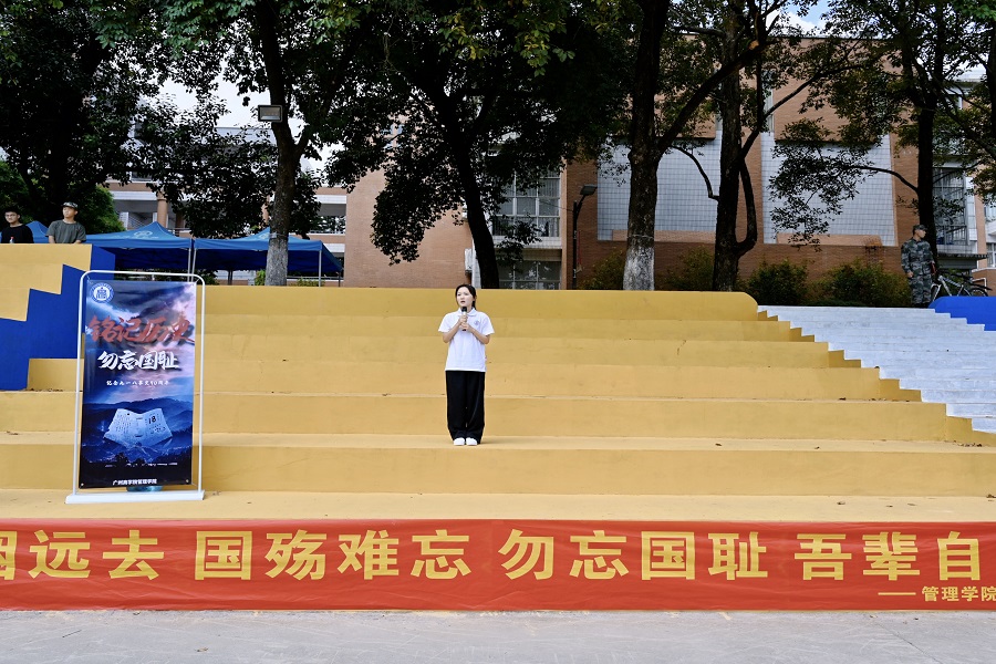 优秀团员代表谢欣如从九一八事变的历史事件、意义以及时代精神三个方面进行宣讲,带领新生共同学习共产党人不忘初心、牢记使命、勇于担当、砥砺奋进的政治品格和先锋力量,引导教育新生在革命历史中汲取精神力量,学史明理,学史增信、学史崇德、学史力行,以更加饱满的精神状态和充满朝气的生活态度积极进入大学阶段,号召团员青年肩负起国家富强、民族复兴的历史使命;21级新生代表、优秀退役老员工士兵余博朗诵诗歌《九一八勿忘国耻》,在铿锵有力的朗诵声中,进一步加深团员青年对国家历史的理解,激发爱国爱党热情,将青春热血投入强国伟业。