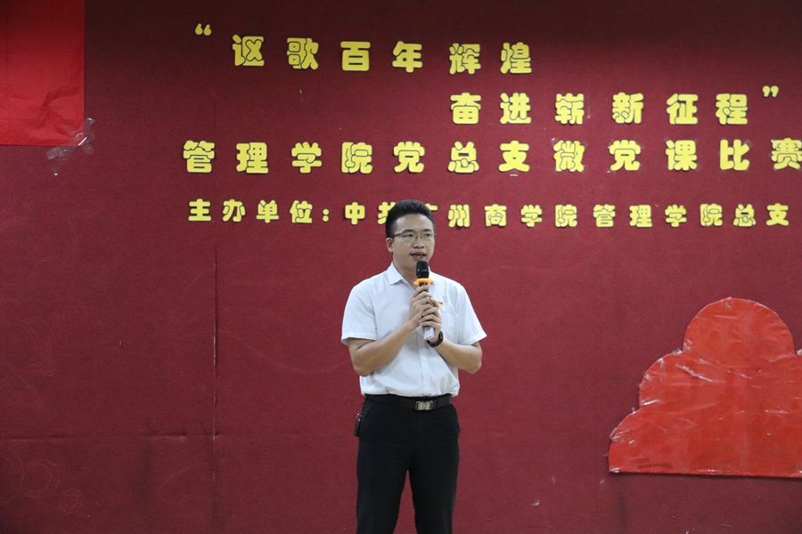 汪椿东书记为比赛作总结,他肯定了参赛选手的认真准备和台上的精彩授课,指出微党课是党史学习教育的有效载体,每个支部应不断创新党史学习教育的形式,并将党史学习教育与“三会一课”有效融合,提升党史学习教育的效果,他对同学们提出三点希望:一是继续认真贯彻落实习近平总书记重要讲话精神,切实做到学史力行;二是时刻保持奋斗热情,用党的实践创造和历史经验启迪智慧、砥砺品格;三是继承中国共产党人的精神谱系,树立正确历史观,坚定信念,砥砺前行。