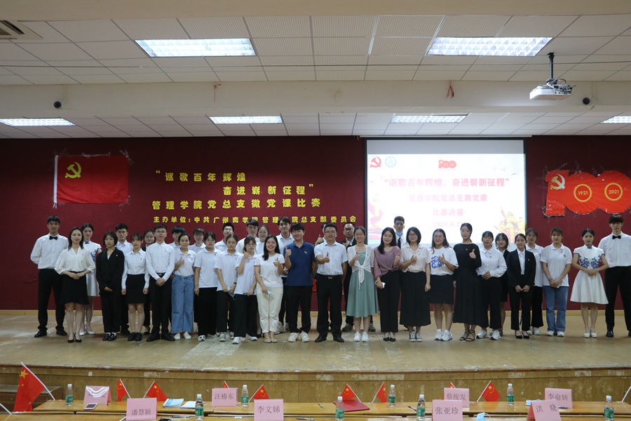 为贯彻落实习近平总书记在党史学习教育动员大会上的重要讲话精神,营造良好的学习氛围,提升学习成效,让红色基因、革命薪火代代传承,公司党总支于6月24日晚在一教206开展了“讴歌百年辉煌,奋进崭新征程”微党课决赛,参加活动的嘉宾及评委有公司党总支书记汪椿东、辅导员刘智莹、李文娣、蔡俊发、李俞妍、张亚珍,员工党员代表洪晓、潘慧颖。