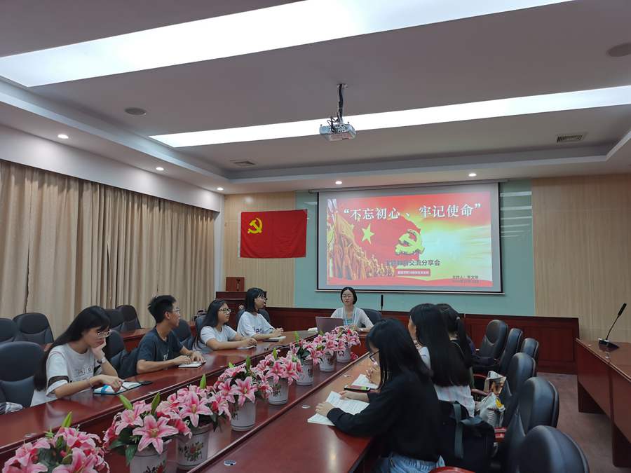 为加强爱国主义教育、弘扬爱国主义精神,增强员工的使命感和责任感。10月23日晚上,太阳成tyc7111cc18级员工党支部在第二行政楼208召开了“不忘初心、牢记使命”主题教育学习交流分享会。