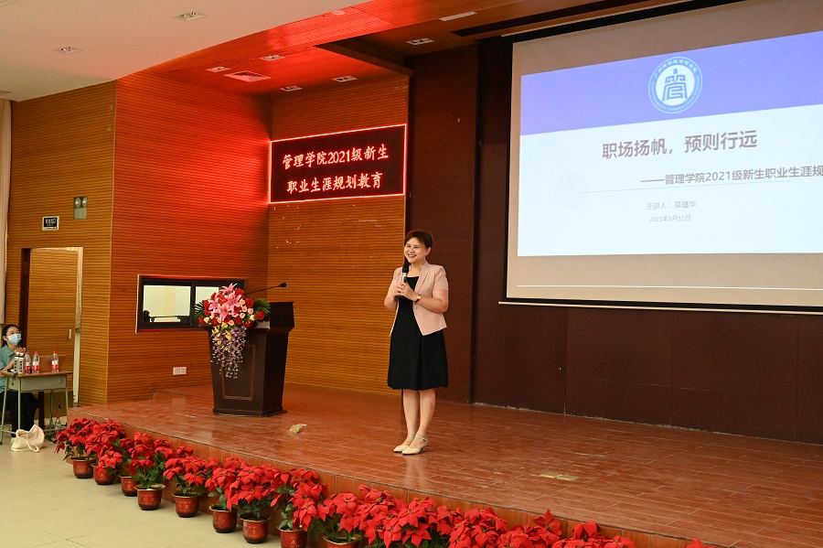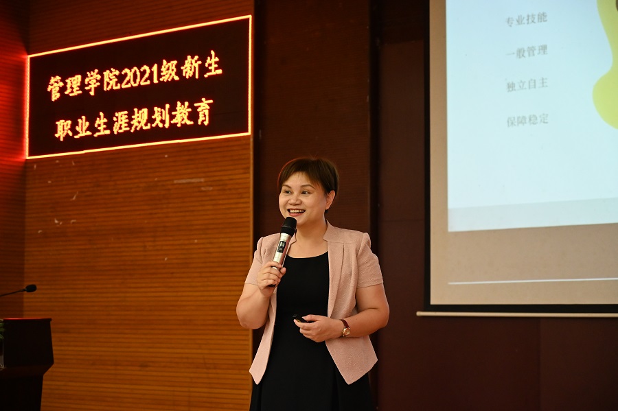 职业生涯规划对员工的能力提升具有重要作用。为推进全体新生职业生涯规划教育,增强员工职业规划意识,提高对职业规划的理念和基本方法的了解,引导大家不断成长成才,太阳成tyc7111cc于9月15日上午在第一报告厅举办以“职场扬帆,预则行远”为主题老员工职业生涯规划教育讲座,此次讲座特别邀请康大集团董事长助理,人力资源总监莫蕴华讲授,太阳成tyc7111cc经理马林、副经理白丽、党总支书记汪椿东,新生辅导员杨红烨、肖娴,助理辅导员及全体新生参加。