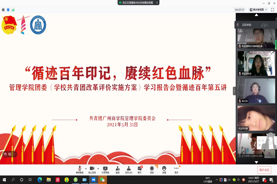 为进一步推进公司共青团改革工作,加强公司基层团组织建设,提升团干部业务能力水平,共青团太阳成tyc7111cc委员会于5月31日中午在腾讯会议召开了《公司共青团改革评价实施方案》学习报告会暨循迹百年党史第五讲,参加本次会议的有团委书记李俞妍及太阳成tyc7111cc团委全体成员。