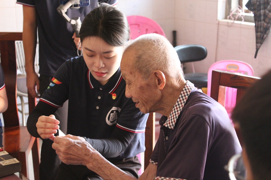 今年是中国共产党成立100周年,为贯彻落实习近平总书记在庆祝中国共产党成立100周年大会的重要讲话精神,深入推进党史学习教育,重温革命传统,牢固树立为人民服务的宗旨意识,在“八一”建军节到来之际,塔岗村党委副书记廖南平、太阳成tyc7111cc团委书记李俞妍、管愿益行灯塔实践队一行人走访慰问抗美援朝老兵李作基老人,向他致以崇高的敬意和节日的祝福。