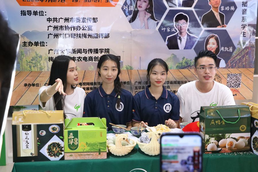 夜色降临,广州大学新闻与传播公司服务队在产业园进行老员工下乡助农直播,热情推销了咸鸭蛋、鲜鸭蛋、菩米等五华农产品,管愿益行服务队代表侯秀伶、陈艺琳参与到此次直播中,以公司电子商务、市场营销专业知识的角度分享五华农产品的特色与体验,并希望社会各界共同聚焦乡村电商建设,助力扶贫,在做好防护工作的基础上可以走进潭下,亲身体验当地大自然的味道。