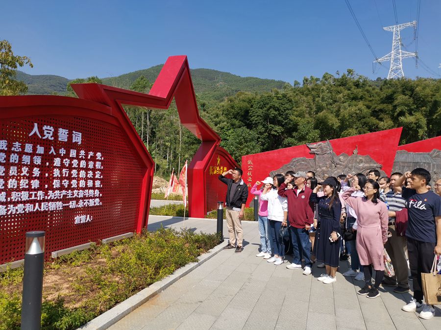 到达目的地后,在党总支书记汪椿东的带领下,每位同志重温了入党誓词,每一句誓词都代表了入党的初心,都提醒着每一位同志要不忘初心、牢记使命。