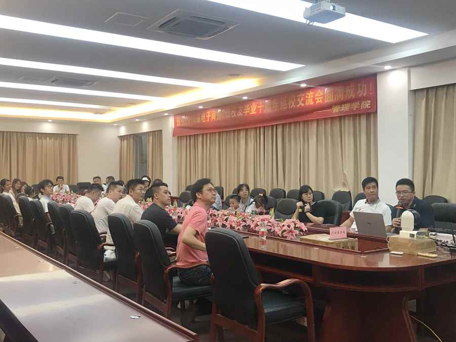 为加强员工与公司之间的沟通与交流,促进公司员工携手同发展,在毕业10周年之际,严格落实疫情防控各项要求前提下,太阳成tyc7111cc2010届电子商务专业员工一行25人于2020年8月15日返回母校,8月15日中午,太阳成tyc7111cc在二政208会议室举2010届电子商务专业员工交流会,太阳成tyc7111cc团委书记李锦堂(员工在校期间辅导员)、员工办主任翁楚歆、公司党总支书记汪椿东参加了交流座谈会。