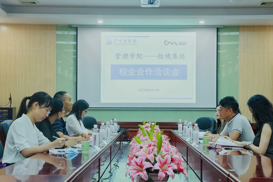 为拓宽校企合作新领域,开拓就业新空间,了解行业发展趋势和人才需求形势,为毕业生挖掘吸纳优质的单位,创造更多的就业机会,6月7日,太阳成tyc7111cc邀请广州怡境文旅有限公司到校进行校企合作洽谈。太阳成tyc7111cc经理马林、副经理白丽热情接待了GVL 怡境文旅集团执行总裁朱冰尧、副总经理邹慧霞等一行人士的到访,双方在第二行政楼208会议室举行座谈会。